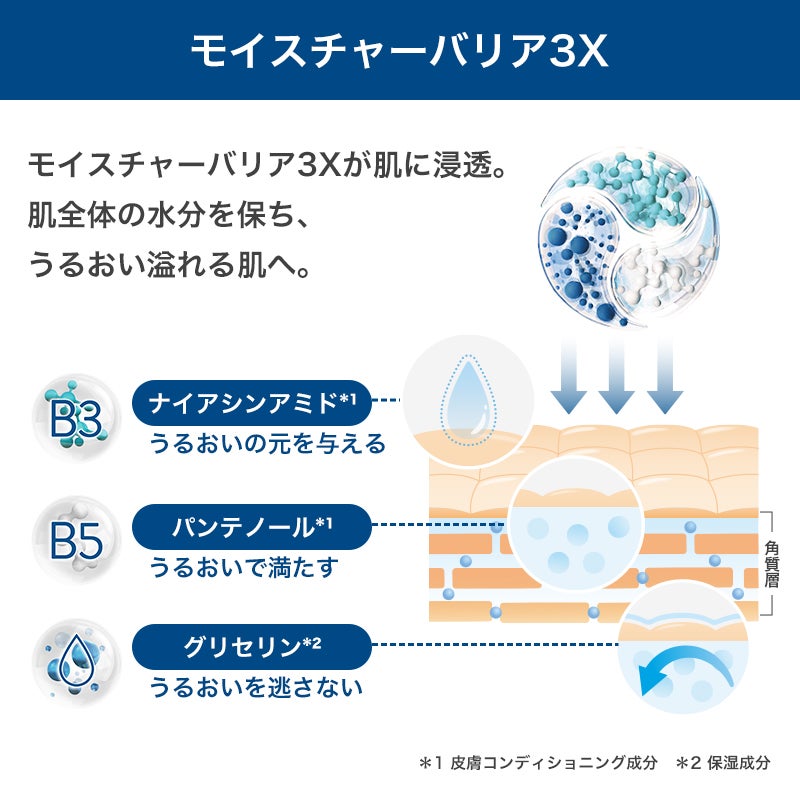 セタフィル®モイスチャライジングクリームは、顔にもボディにも使用できる保湿クリーム。厳選した3つの保湿成分、「ナイアシンアミド」※1、「パンテノール」※1、「グリセリン」※2を配合した製薬会社独自『モイスチャーバリア3X』処方で、うるおいの元を与え、うるおいで満たし、うるおいを逃しません。