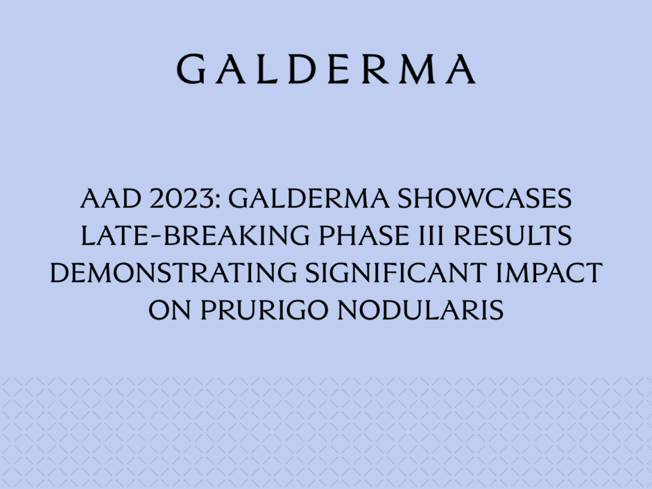Zug, Switzerland – March 18, 2023 – Galderma, the leading company solely dedicated to advancing the future of dermatology, today premiered the positive phase III results from the OLYMPIA 2 trial evaluating the efficacy, safety, pharmacokinetics and immunogenicity of nemolizumab compared with placebo in adult patients with prurigo nodularis. The results were presented as a late-breaking presentation at the 2023 American Academy of Dermatology (AAD) Annual Meeting by Dr. Shawn Kwatra, Associate Professor of Dermatology at the Johns Hopkins University School of Medicine. Galderma has an extensive presence at the meeting with further updates from its broad portfolio across Therapeutic Dermatology, Dermatological Skincare and Injectable Aesthetics.