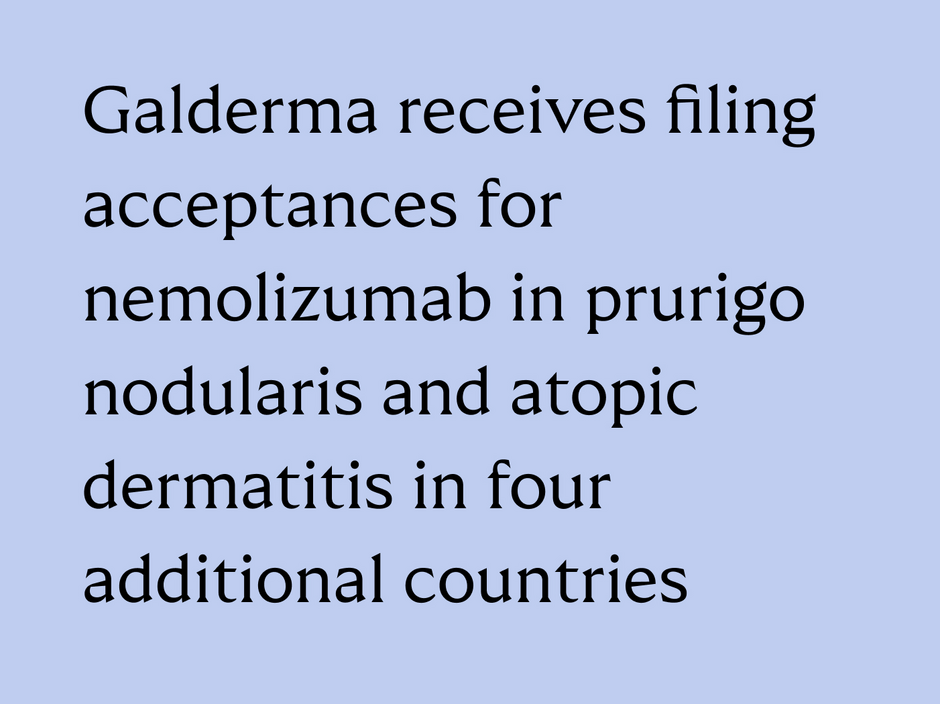Galderma receives filing acceptances for nemolizumab in prurigo nodularis and atopic dermatitis in four additional countries